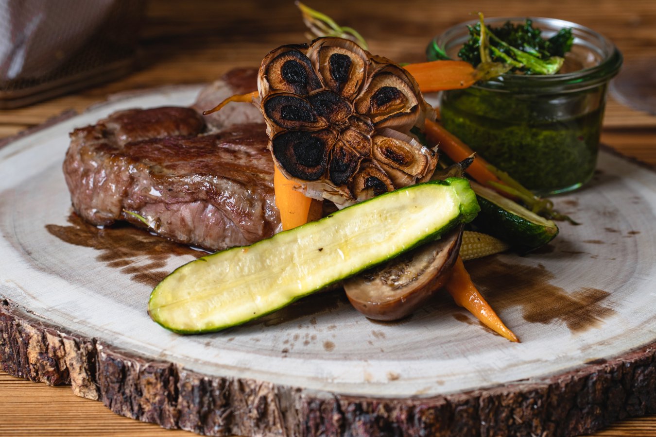 Filet bond – pork tenderloin in white wine and rosemary sauce, potato gratin, root vegetables glazed with honey and rosemary
